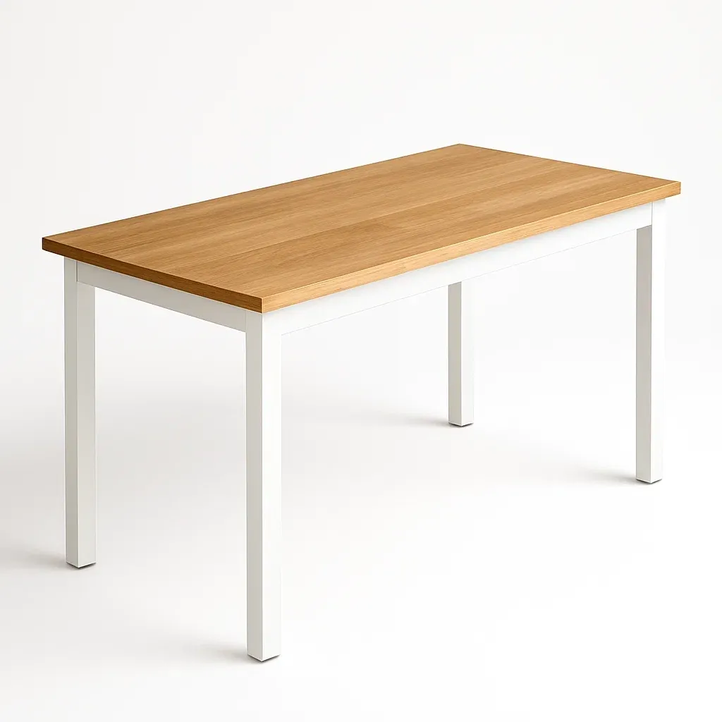 Holztischplatte und schlichter weißer Rahmen, geeignet für verschiedene Umgebungen.